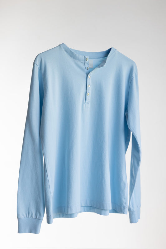 Henley Style Long Sleeve Top - Organic Cotton - Blue