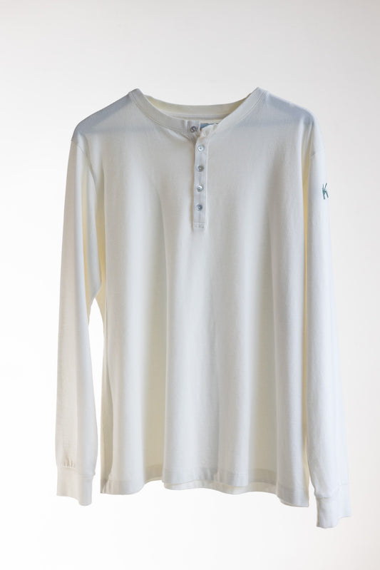 Henley Style Long Sleeve Top - Organic Cotton - Off White