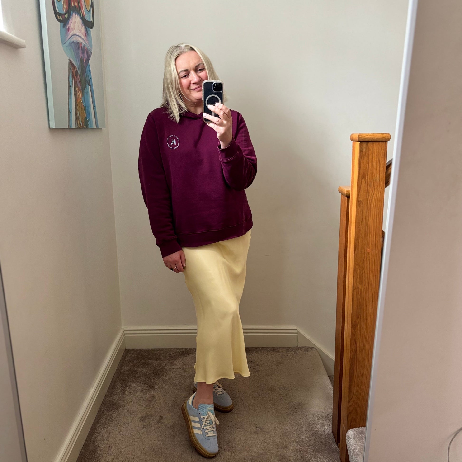 Absolutely love this hoodie. Beautiful colour but it’s the fit that really has me impressed. As a pear shape, this hoodie is both a relaxed fit yet fitted which is so unusual. It shows off your shape without catching or clinging and a lovely loose waistband. Also love that the shoulders are not dropped. Love it, well done